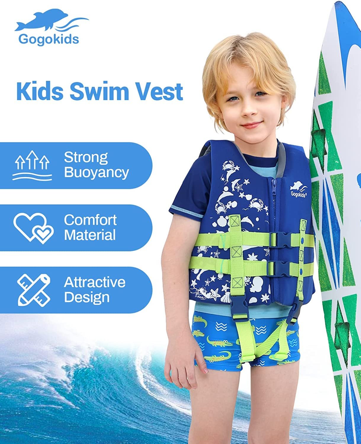- BUOYANCY SUPPORT: Being able to swim is a lifelong skill, Gogokids swim vests will help to provide buoyancy support and make kids to master this skill more easily.