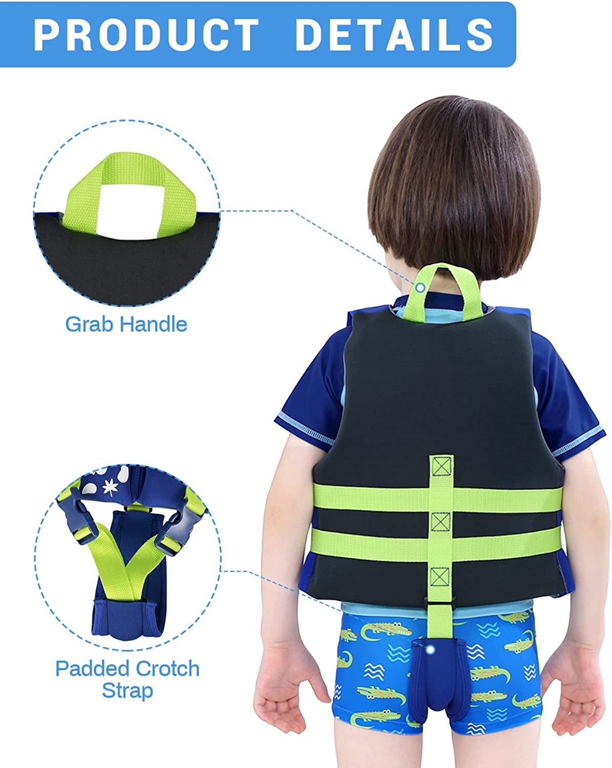 - COMFORT & FIT: The kids swim vest comes with an adjustable straps, crotch strap and multiple sizes available to ensure a good fit.